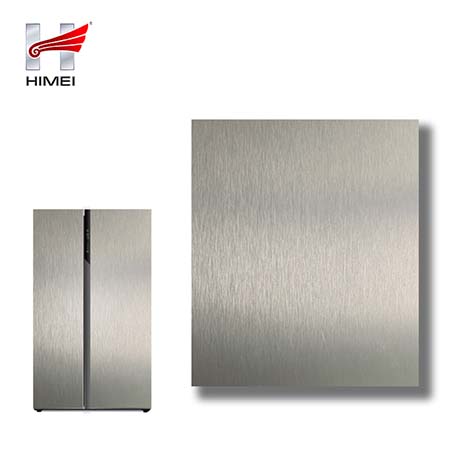 家電用覆膜鋼板,就是鋼板的基材上面覆了一層PET膜/PVC膜,然后通過覆合貼覆而成,主要應用在各類家電外殼裝飾上,例如冰箱、洗衣機、電飯煲等外殼部件。覆膜是一種物理工藝,一層膜一層鋼板經過高溫高壓壓合而成。