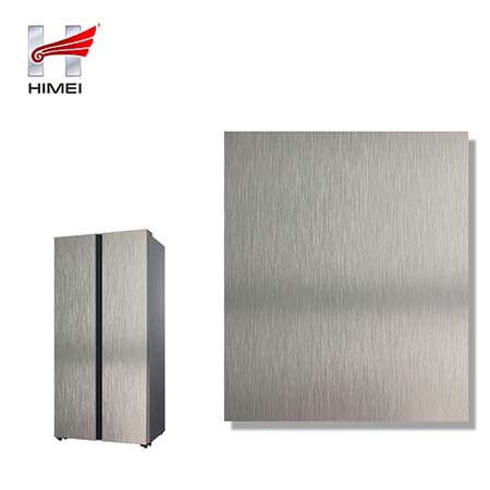 家電用覆膜鋼板,就是鋼板的基材上面覆了一層PET膜/PVC膜,然后通過覆合貼覆而成,主要應用在各類家電外殼裝飾上,例如冰箱、洗衣機、電飯煲等外殼部件。覆膜是一種物理工藝,一層膜一層鋼板經過高溫高壓壓合而成。