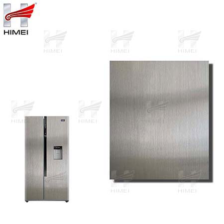 家電用覆膜鋼板,就是鋼板的基材上面覆了一層PET膜/PVC膜,然后通過覆合貼覆而成,主要應用在各類家電外殼裝飾上,例如冰箱、洗衣機、電飯煲等外殼部件。覆膜是一種物理工藝,一層膜一層鋼板經過高溫高壓壓合而成。