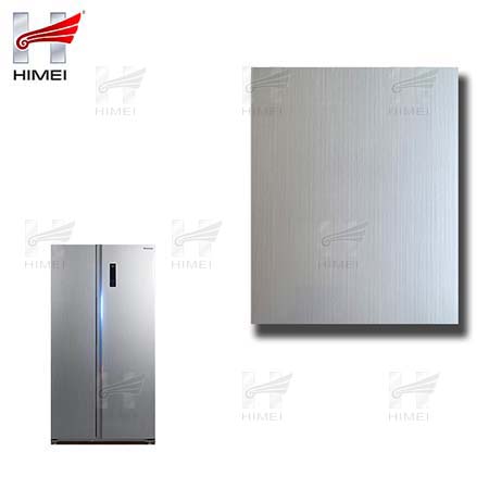 家電用覆膜鋼板,就是鋼板的基材上面覆了一層PET膜/PVC膜,然后通過覆合貼覆而成,主要應用在各類家電外殼裝飾上,例如冰箱、洗衣機、電飯煲等外殼部件。覆膜是一種物理工藝,一層膜一層鋼板經過高溫高壓壓合而成。